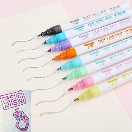 8 Couleurs Deux Lignes Couleur Contour Stylo Papeterie Tissu