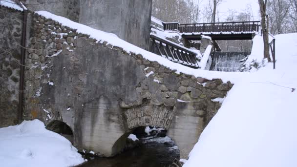 Moulin à Eau Vintage Construction Ruisseau écoulement Archs Pierres Neige Hiver