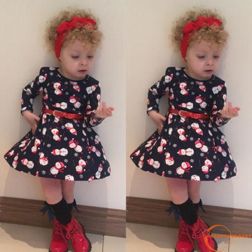 Iei Fashion Gaun Pesta Anak Bayi Perempuan Lengan Panjang Desain Manusia Salju Natal