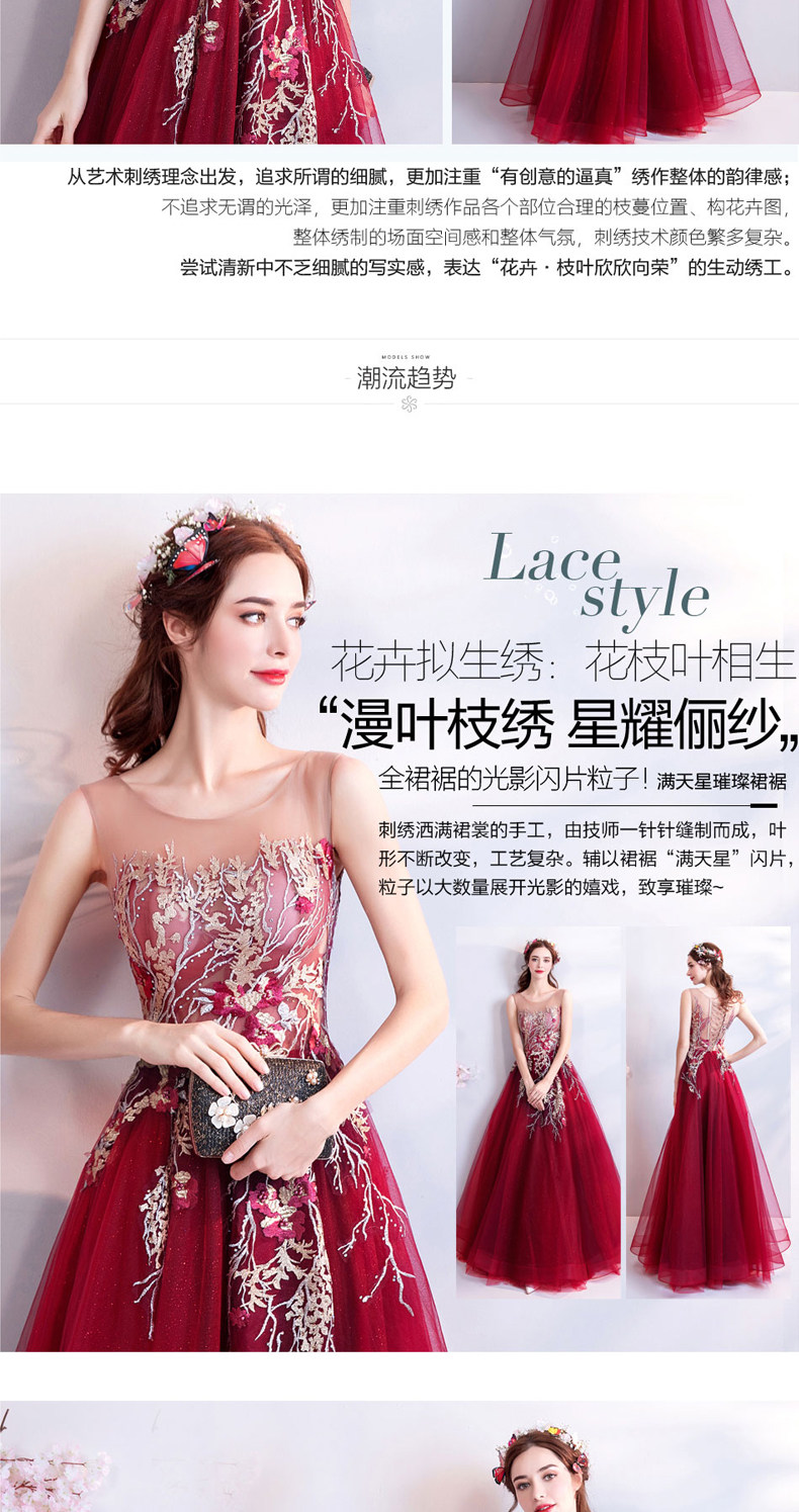 Koleksi Taobao Bridalbeauty Mahal Elegan Glamor Tekstur Warna Merah Pengantin Wanita Baju Pelayanan Makan Malam Pesta Tahunan Gaun Malam 9011